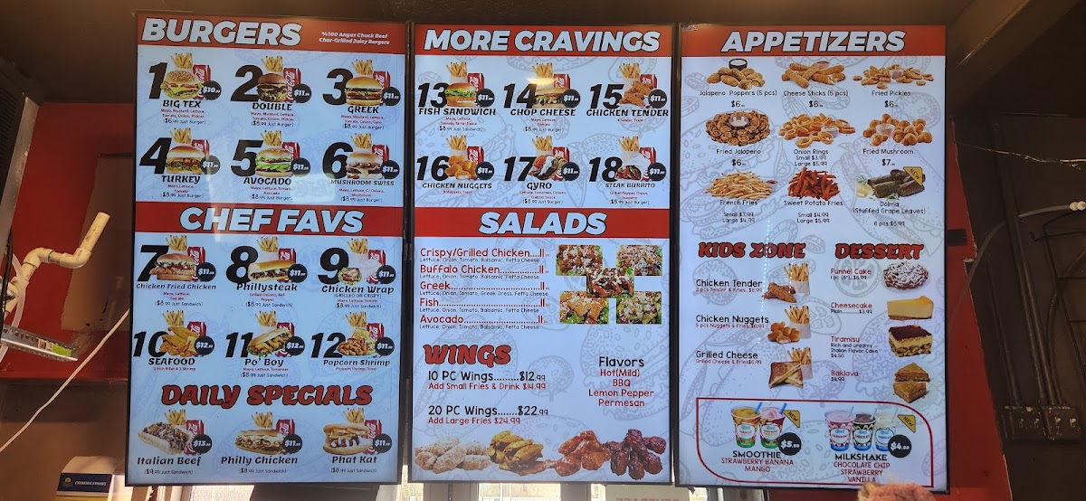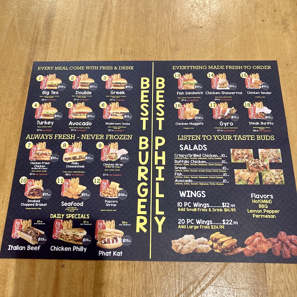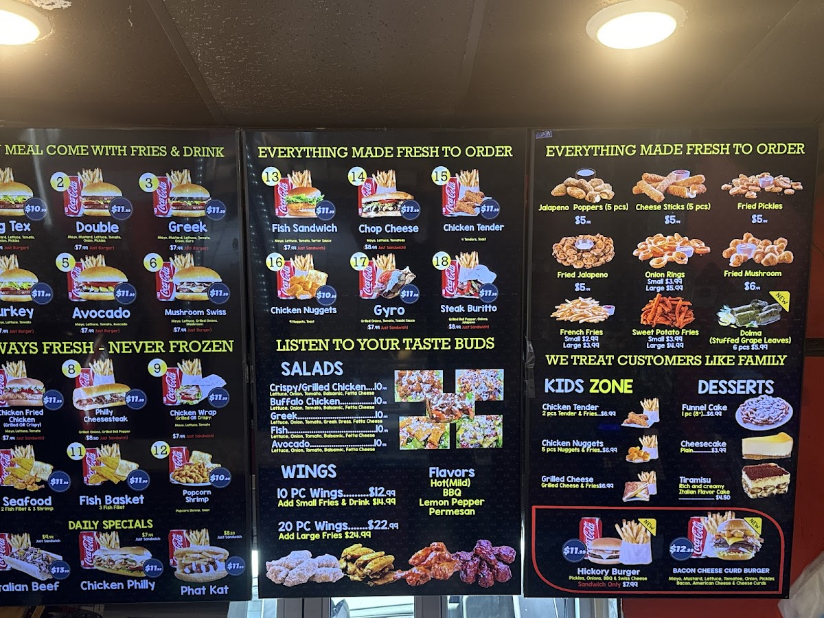“ The service was great. Clean restaurant and bathroom. My family and I ate here on a Friday. The Manager Rami gave me 2 free meals the day after a misunderstanding with our order. We came back on Saturday for it. Gave me his number if any problems and there was not any. Staff was friendly. Definitely will be back. Burgers are charbroiled to perfectly and fries were great. We had burgers,fries,Philly steak, fish and shrimp meal, onion rings and my son had the nugget meal. Everything great fresh and cooked to order. I recommend this place. ”